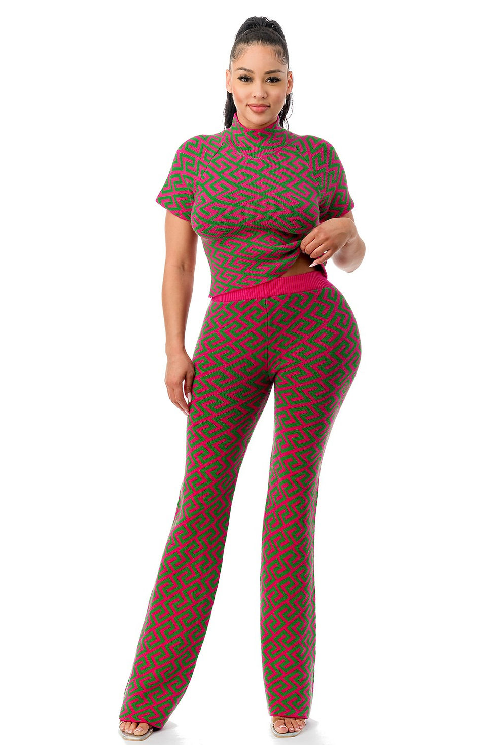 copy of 2 PIECE PANT SET DESIGNER GREEN AND PINK PRINT
